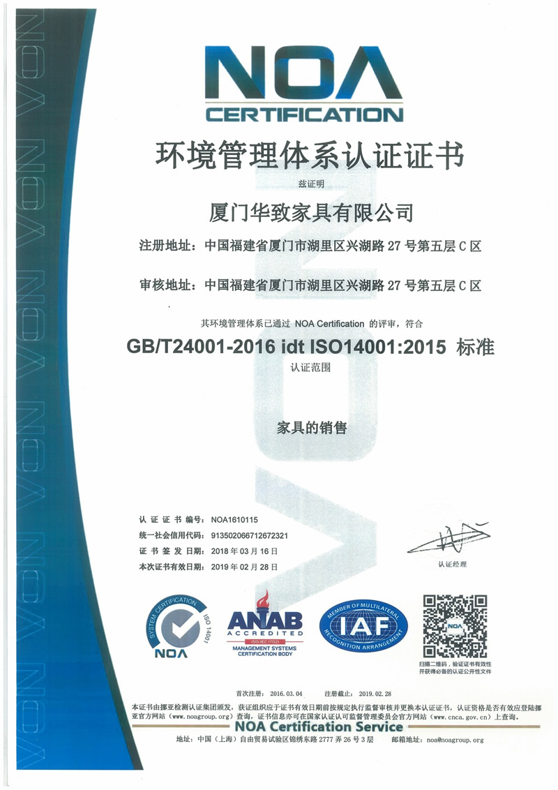 環(huán)境管理體系認(rèn)證證書