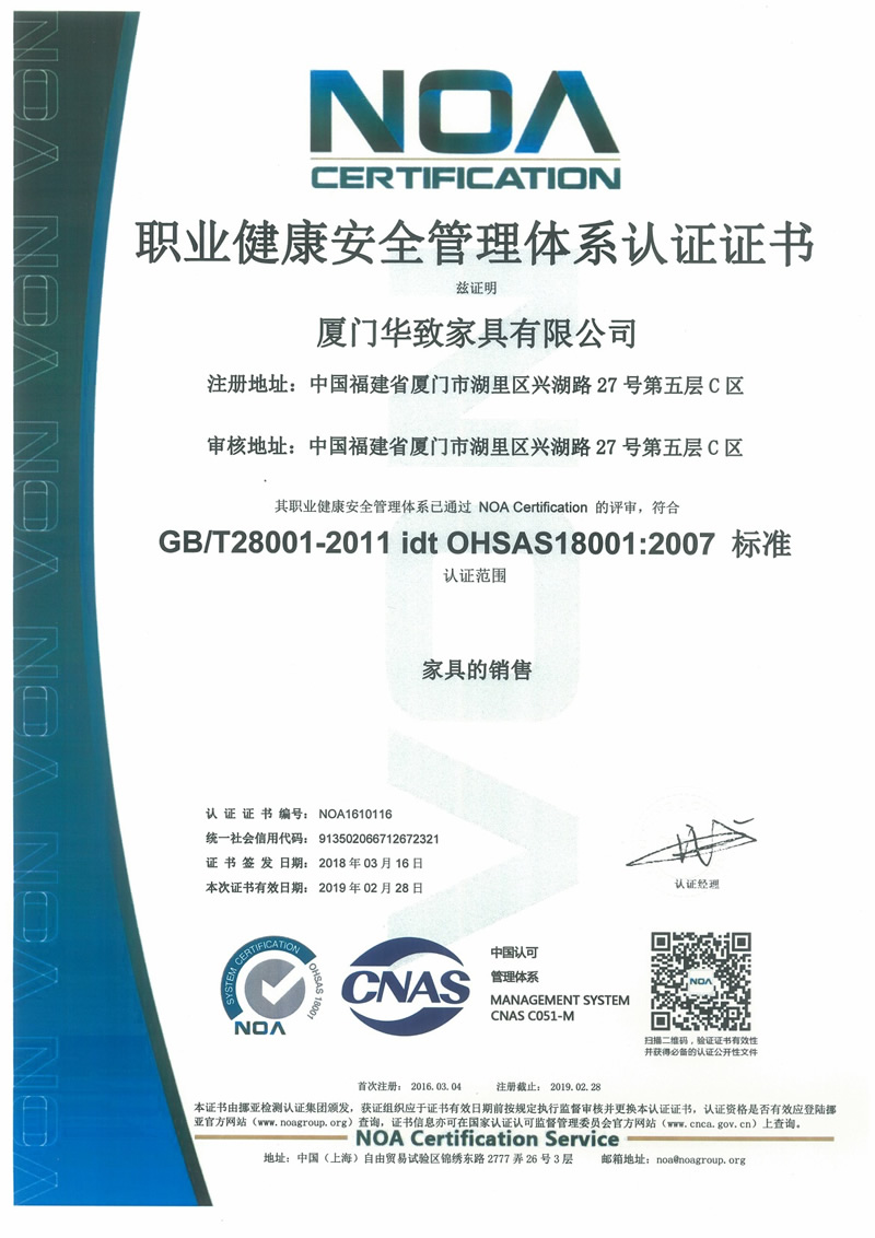職業(yè)健康安全管理體系認(rèn)證證書